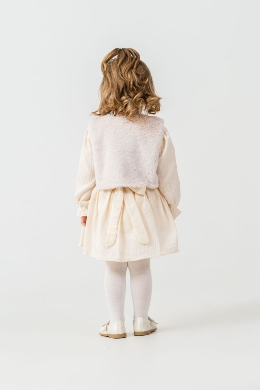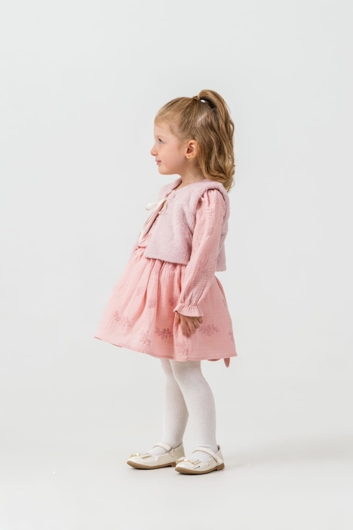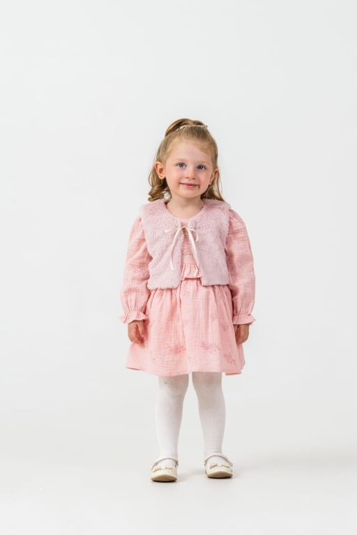 551 PELUŞ YELEKLİ MÜSLİN ELBİSE 2-5 YAŞ